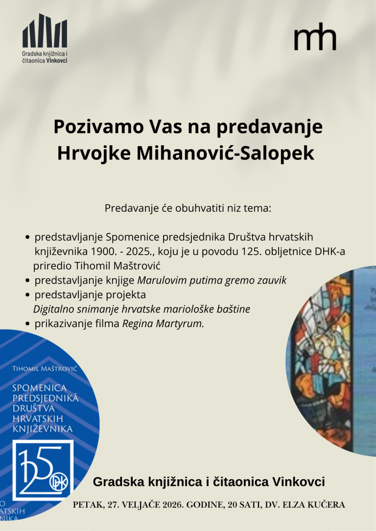 Trebaš pomoć za seminar ili diplomski rad? Ne guglaj! Zatraži literaturu tako da ispuniš obrazac i pošalješ ga na: znanstveniodjel@gkvk.hr, a od pomoći ti može biti i naša Digitalna zbirka Cibaliana i online usluga Pitajte knjižničare.