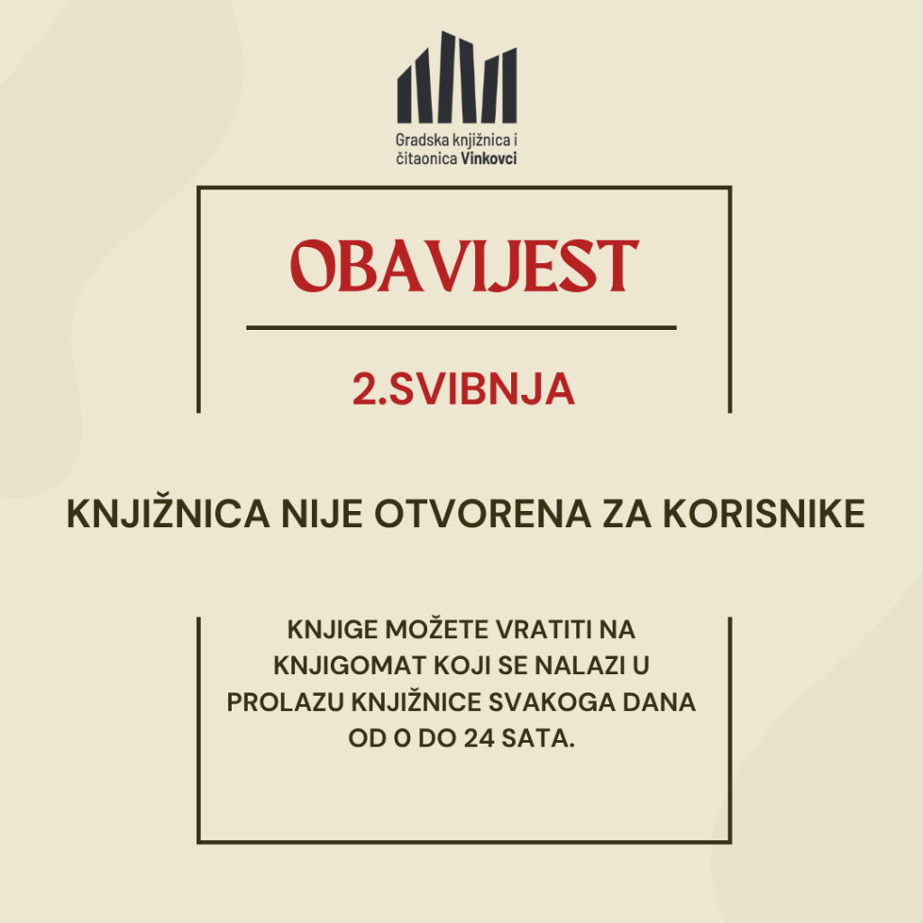 ZBOG ODRŽAVANJA DRŽAVNE SMOTRE LIDRANA 2026. KNJIŽNICA IMA POSEBNO RADNO VRIJEME U UTORAK, 21. TRAVNJA I ČETVRTAK 23. TRAVNJA